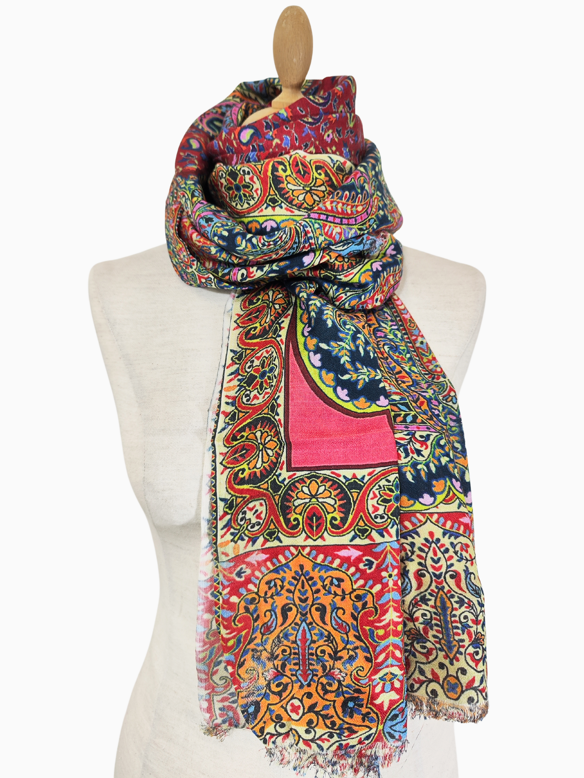 Silk and Cotton blend Stole-Scarf-Wrap in handmade Autumn collection 2024 Multi Colour