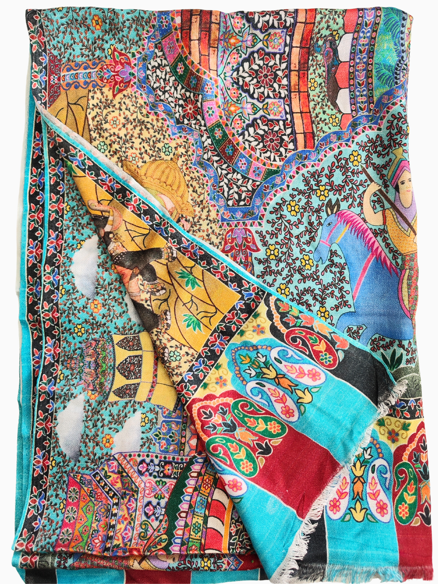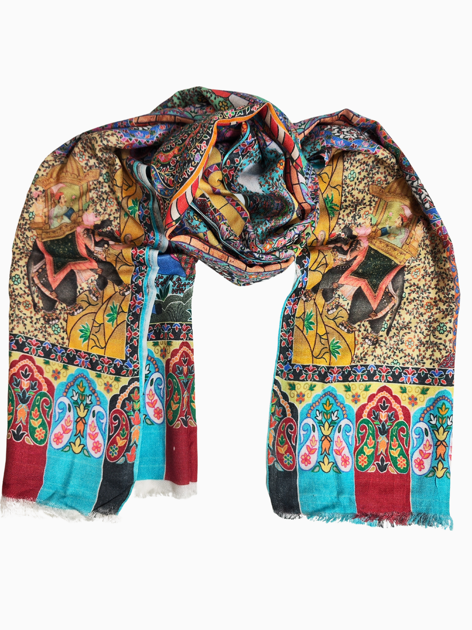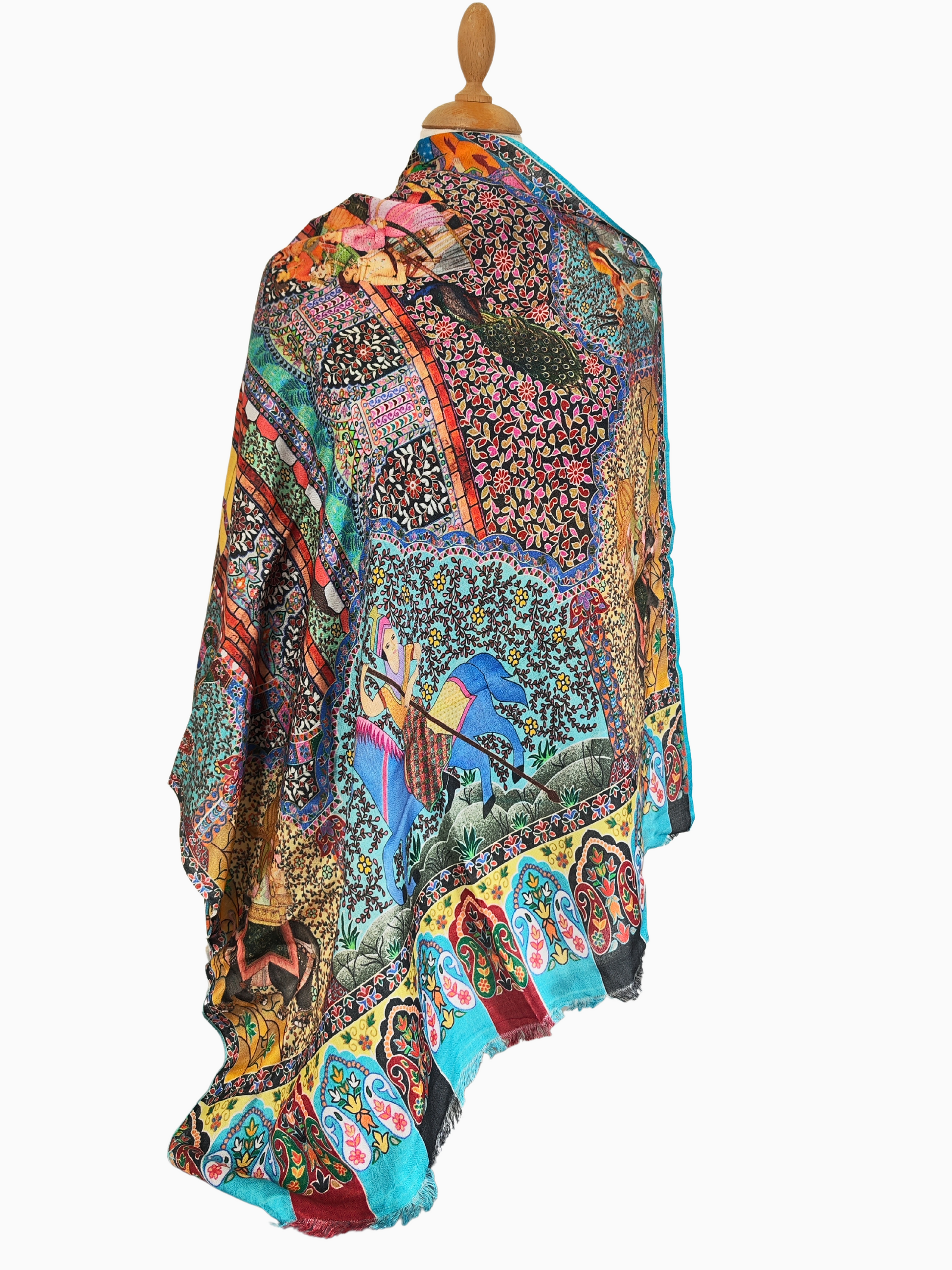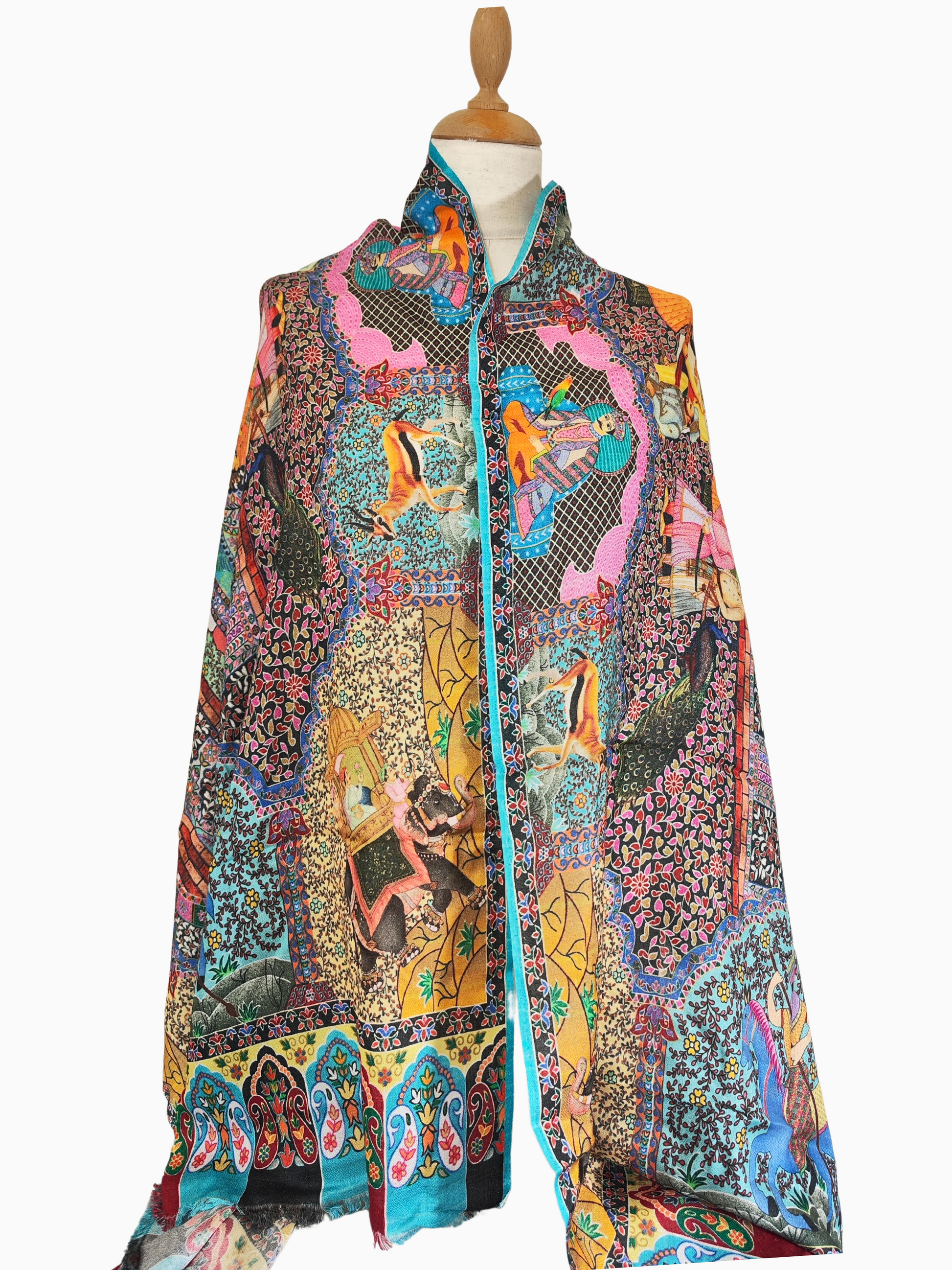 Stola-Schal-Wickeltuch aus Seide und Baumwolle in handgefertigter Herbstkollektion 2024, Mehrfarbig